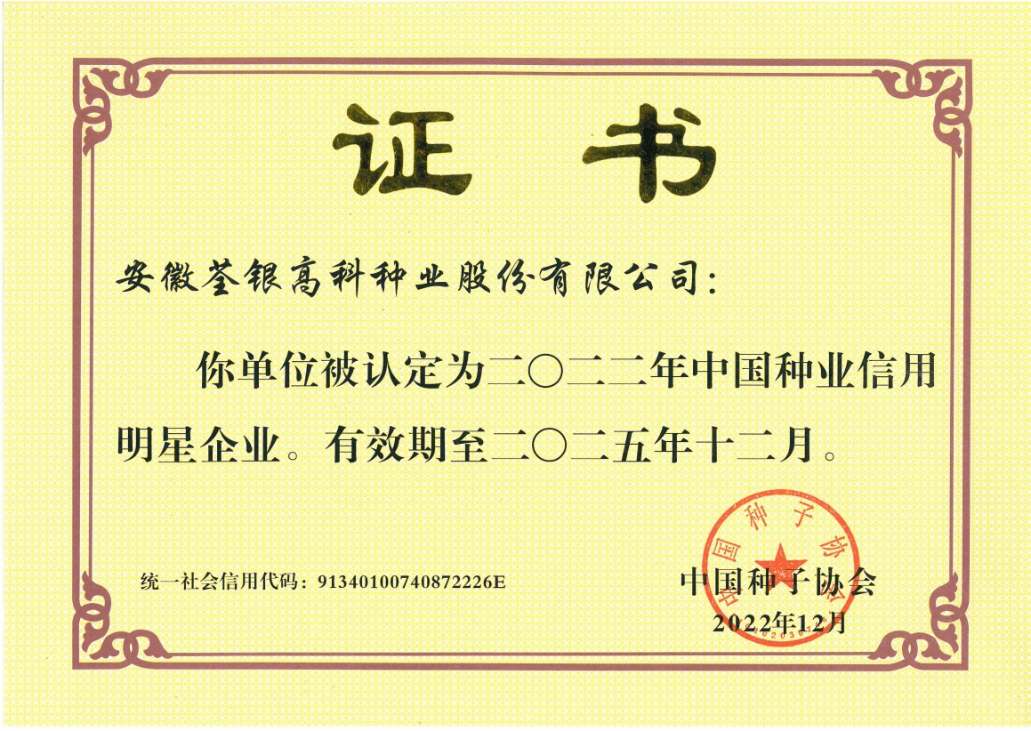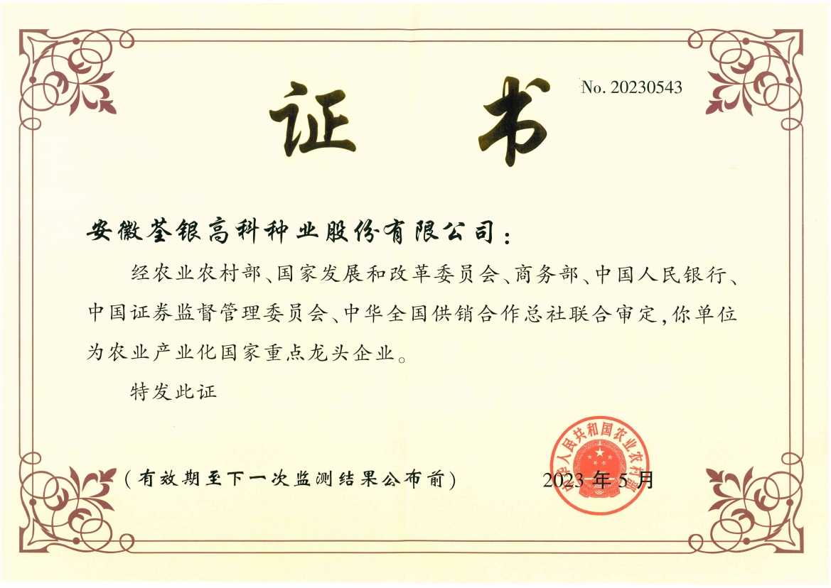 安徽荃銀高科種業(yè)股份有限公司是一家“以種業(yè)為核心、農(nóng)業(yè)服務(wù)為延伸、探索和創(chuàng)新農(nóng)業(yè)多元化發(fā)展”的現(xiàn)代高科技種業(yè)上市公司,證券代碼:300087。公司注冊資金9.47億元,系“中國種業(yè)領(lǐng)軍企業(yè)、農(nóng)業(yè)產(chǎn)業(yè)化國家重點(diǎn)龍頭企業(yè)、國家高新技術(shù)企業(yè)、農(nóng)業(yè)部首批農(nóng)作物種子育繁推一體化企業(yè)、中國種業(yè)信用明星企業(yè)"。在國內(nèi)控股子公司20多家,在國外設(shè)立分支機(jī)構(gòu)4家,良種銷售至全國20多個?。ㄊ?、區(qū)),出口覆蓋20多個國家與地區(qū),種業(yè)綜合實(shí)力、雜交水稻研發(fā)、推廣及海外業(yè)務(wù)規(guī)模均居全國種子企業(yè)前2位。